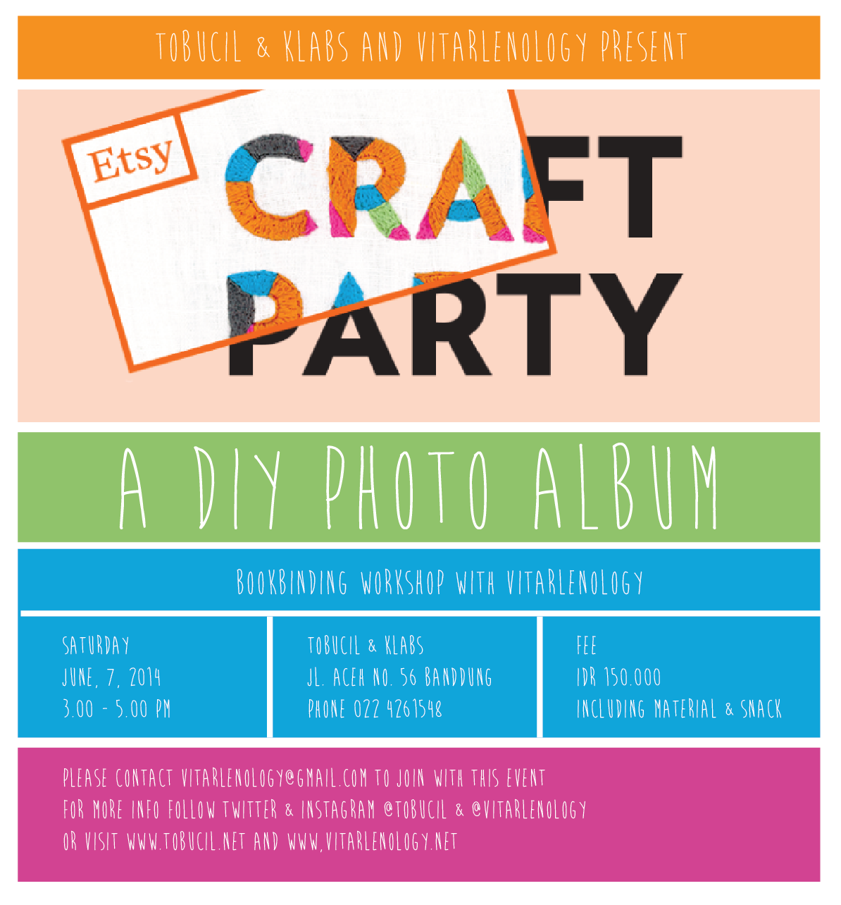 This year, we encourage you to give new life to old photos through craft! Check out recaptured memories from around the world, and share yours using the tags #craftpartyTahun ini, Tobucil & Klabs dan Vitarlenology memutuskan untuk ikut merayakan ulang tahun Etsy.com yang setiap tahunnya dirayakan dengan mengundang komunitas craft dan maker di seluruh dunia untuk menggelar apa yang disebut dengan Craft Party. Untuk Vitarlenology dan Tobucil mengajak teman-teman untuk bergabung merayakannya dengan belajar book binding dengan membuat photo album untuk merespon tema ulang tahun Etsy tahun ini.